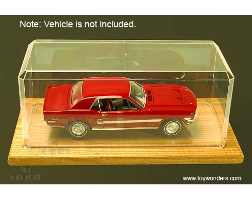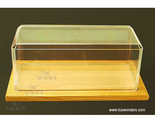 PP355CSET Crystal Clear Display Case with Wood Base. Great for 1:18 scale diecast collectible model car. This Crystal Clear Case dimension is 13.25"L x 5.75"W x 5.5"H. It features beveled edge & stackable design. Three distinctive "garage background" theme on the box for customizing display if desire. This beautiful solid Wood Base dimension is 15"L x 7.375"W x 0.75"H with routed groove.