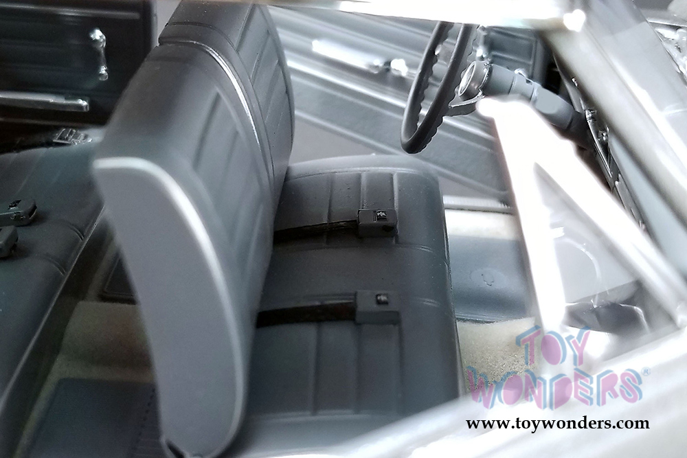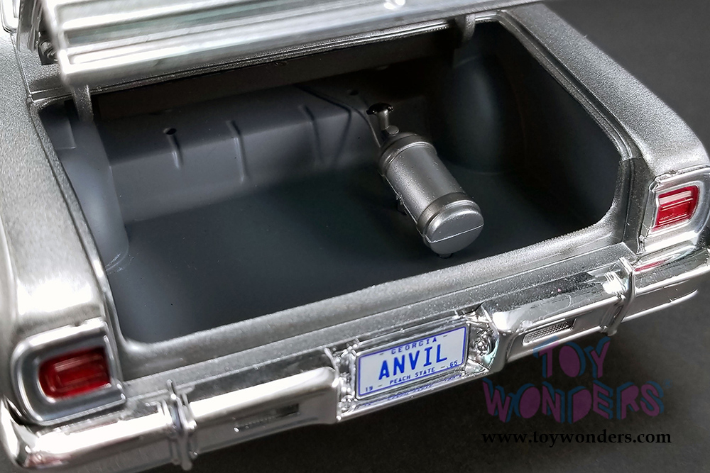 A1805514 Acme - 1965 Chevrolet® Chevelle® The Anvil Hardtop. 1:18 scale diecast collectible model. This Chevy® Chevelle® features cloth seat belts, poseable steering. Plumbed and wired engine with a serialized plate. This '65 Chevrolet® is manufactured by Acme. Individually packed in decorated a box. Box size: 13.25"L x 6.25"W x 5.25"H. Limited edition to 384 pcs.