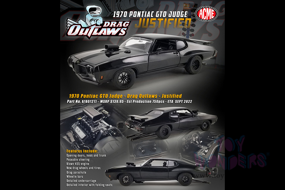 Acme Drag Outlaws - Pontiac GTO Judge Hardtop - Justified (1970, 1/18 scale diecast model car, Black) A1801217