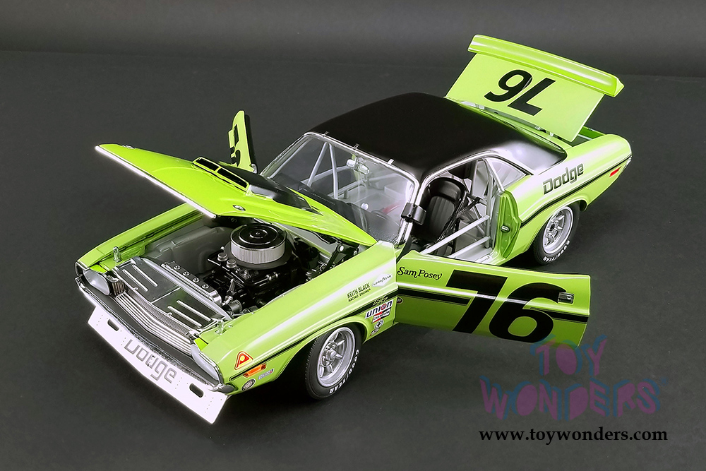 Acme | Sam Posey #76 Dodge Challenger Trans Am (1970, 1/18 scale diecast model car, Green) 1806009