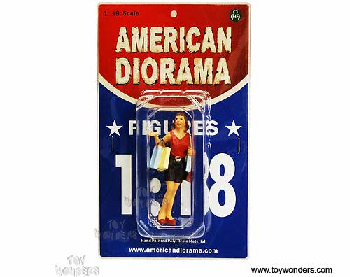 77724 American Diorama Figurine - 1:18 scale 50s Susan Figure in RED shirt & BLACK pants. Hand painted poly-resin material. This 3.75" long figure is great for decorating 1:18 scale cars and dioramas. Manufactured by American Diorama. Individually packed in a blister card. Card size: 5" x 8.5". 12 pcs per inner box.