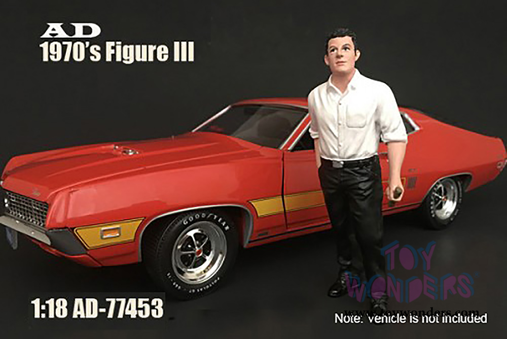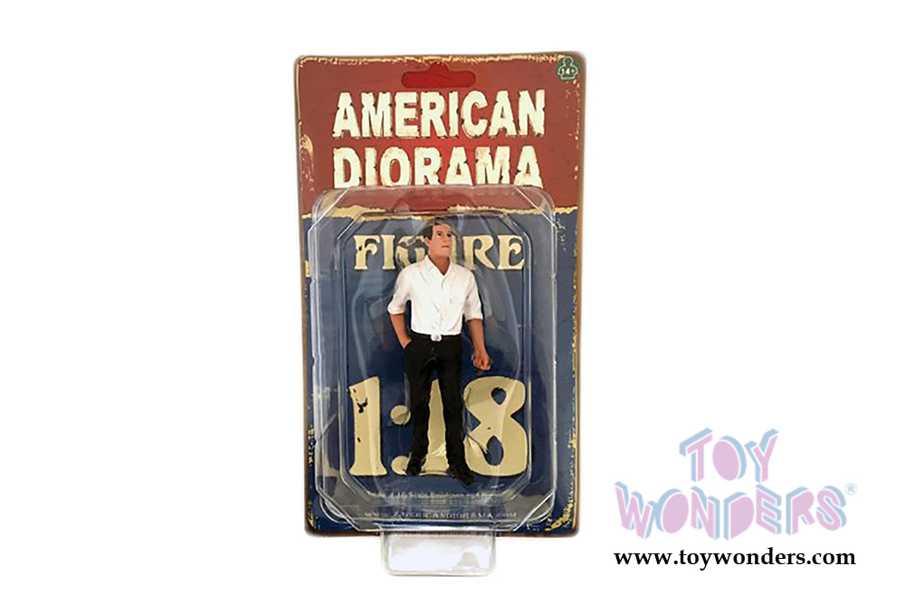 77453 American Diorama Figurine - 70's Style Figure - III. 1:18 scale male figure in black pants and white shirt.