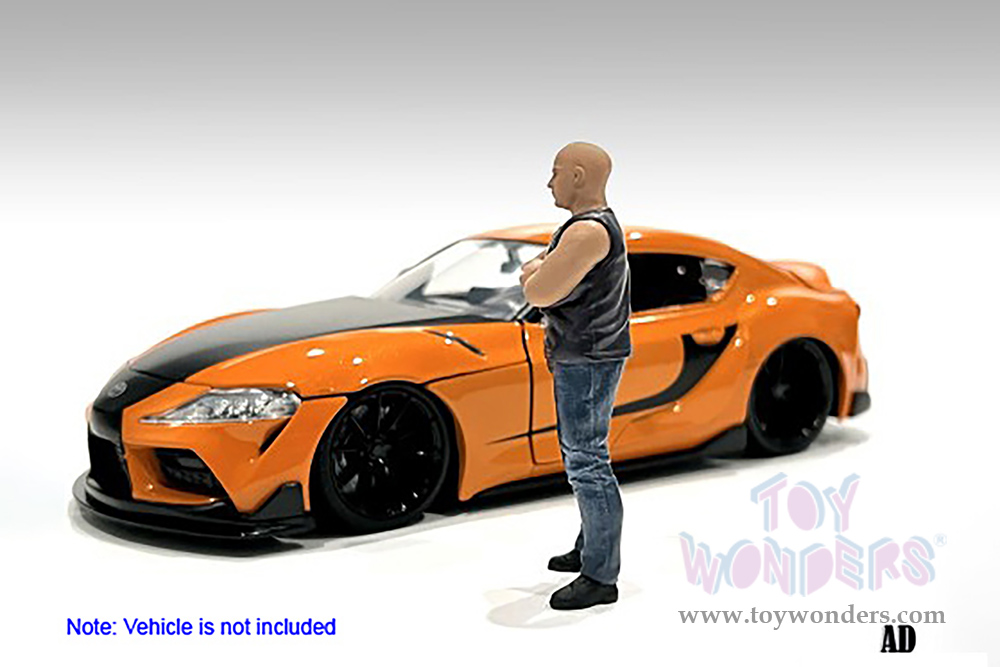 76426 American Diorama Figurine - Car Meet 3 Figure 1. 1:24 scale male figure in a black shirt and blue pants. Hand painted cold-cast resin. This 3"H figure is great for decorating 1:24 scale cars, auto body shop and dioramas. Manufactured by American Diorama. Individually packed in a blister card. Card size: 4" x 7.5".