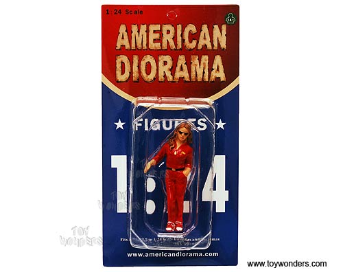 23836 American Diorama Figurine - 1:24 scale Car Model Victoria Figure in RED. Hand painted cold-cast resin. This 2.75" figure is great for decorating 1:24 scale cars and dioramas. Manufactured by American Diorama. Individually packed in a blister card. Card size: 3.75" x 7.5". Note: Vehicle is not included.