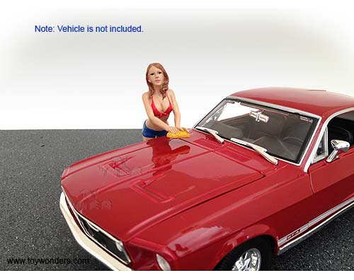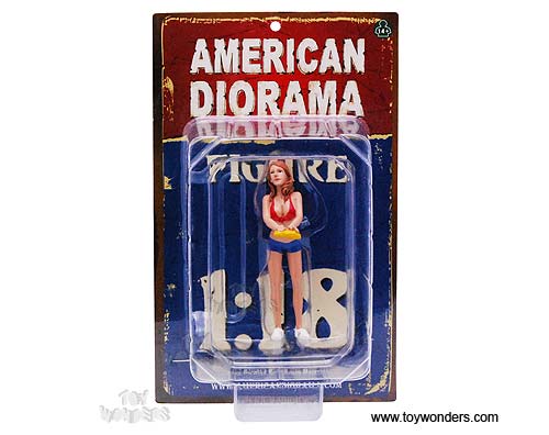 23845 American Diorama Figurine - 1:18 scale Car Wash Girl Jennifer Figure in RED. Hand painted poly-resin material. This 3.5" long figure is great for decorating 1:18 scale cars and dioramas. Manufactured by American Diorama. Individually packed in a blister card. Card size: 5" x 8.5". 12 pcs per inner box. Note: Vehicle is not included.