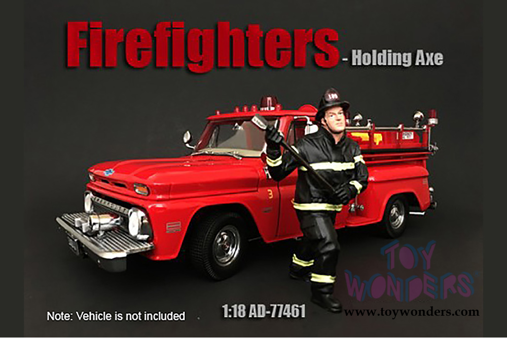American Diorama Figurine - Firefighter | Holding Axe (1/18 scale, Black/Yellow) 77461