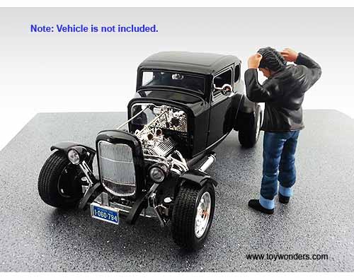 Hand painted polyresin material. This 3.75" long figure is great for decorating 1:18 scale cars, auto body shop, and dioramas. Manufactured by American Diorama. Individually packed in a blister card. Card size: 5" x 8.5". Note: Vehicles are not included.