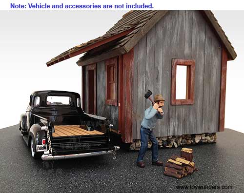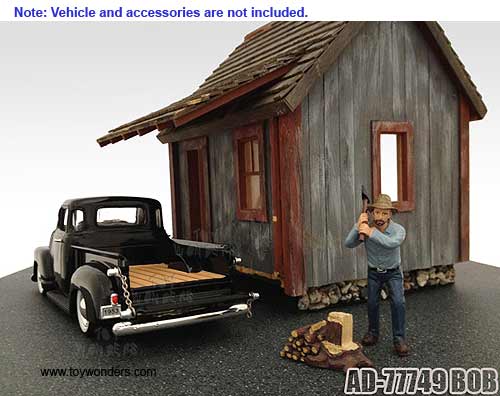 American Diorama Figurine - Logger Bob Figure w/ Log Piece (1/24 scale, Blue) 77749