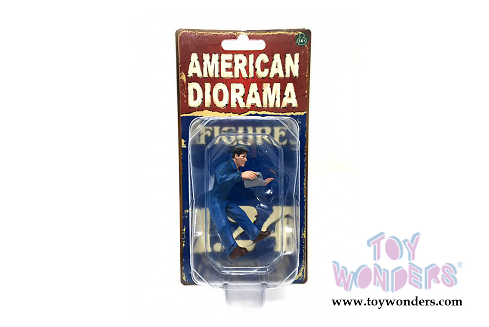 77499 American Diorama Figurine - Mechanic | Doug Filling Engine Oil. 1:24 scale, hand painted poly-resin material. 2.5"H male in BLUE overalls holding an engine oil container. Figure is great for decorating 1:24 scale cars and dioramas. Manufactured by American Diorama. Packed in a blister card. Card size: 4" x 7.5". 12 sets per inner. Note: Vehicle is not included.
