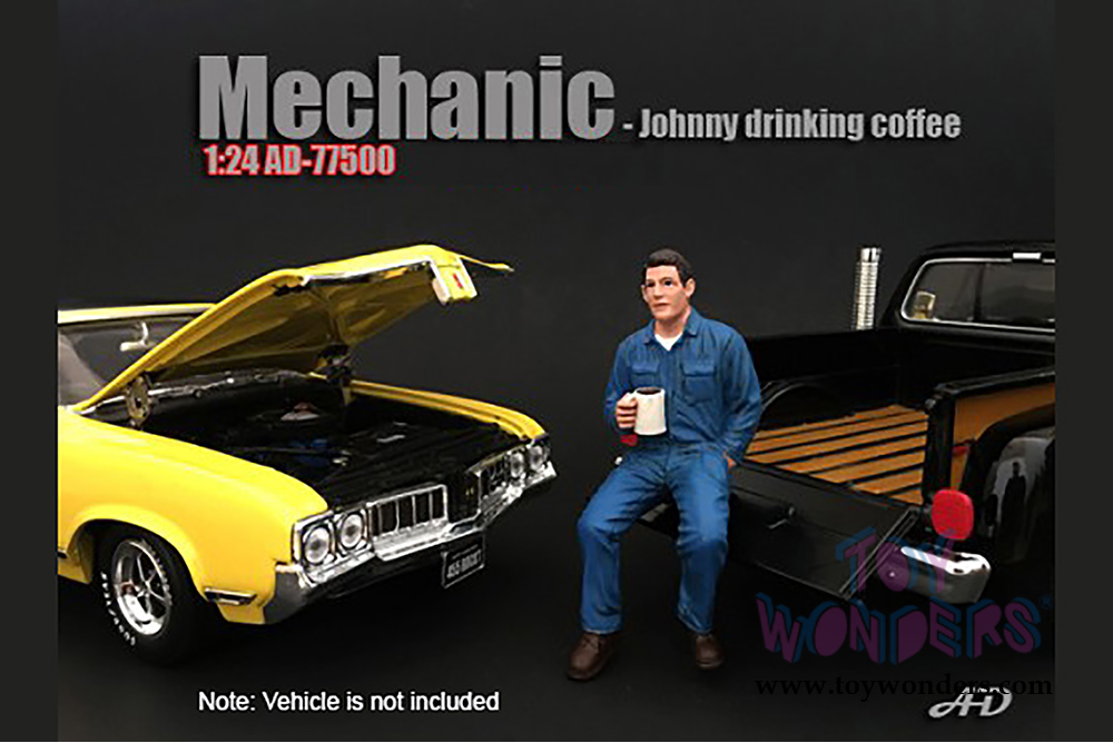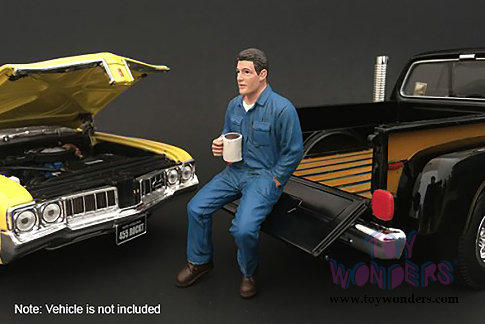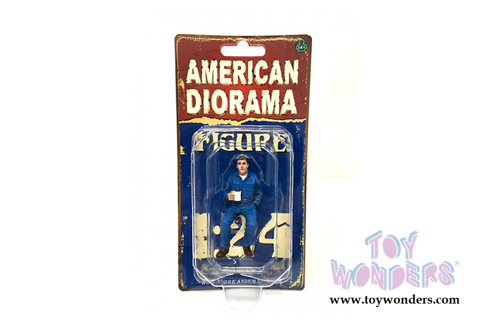 American Diorama Figurine - Mechanic | Johnny Drinking Coffee (1/24 scale, Blue) 77500