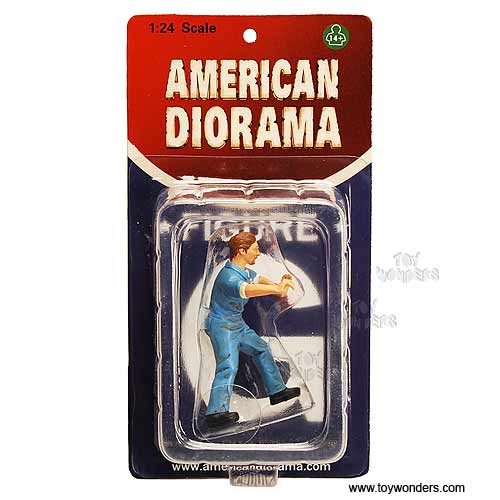 51593 American Diorama Figurine - 1:24 scale Mechanic Sean Figure in BLUE. Hand painted cold-cast resin. This 2.75" figure is great for decorating 1:24 scale cars auto body shop, and dioramas. Manufactured by American Diorama. Individually packed in a blister card. Card size: 3.75" x 7.5". 12 pcs per inner.