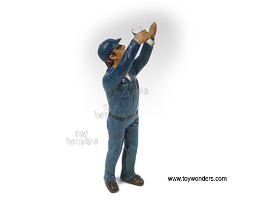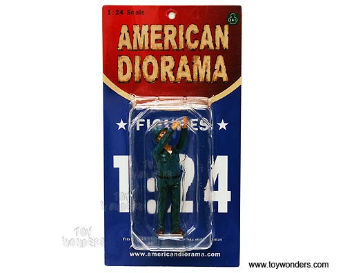 23907 American Diorama Figurine - 1:24 scale Mechanic at Work Steve Figure in BLUE. Hand painted cold-cast resin. This 3.25" figure is great for decorating 1:24 scale cars and dioramas. Manufactured by American Diorama. Individually packed in a blister card. Card size: 3.75" x 7.5". Note: Vehicle is not included.