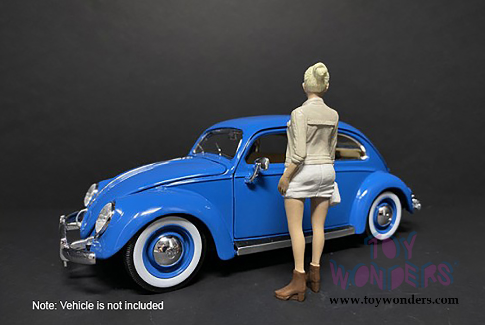 38224 American Diorama Figurine - 1:18 scale Partygoers Figure IV in white dress and beige jacket. Hand painted polyresin material. This 3.75" tall figure is great for decorating 1:18 scale cars and dioramas. Manufactured by American Diorama. Individually packed in a blister card. Card size: 5" x 8.5". 12 pcs per inner box. Note: Vehicle is not included.