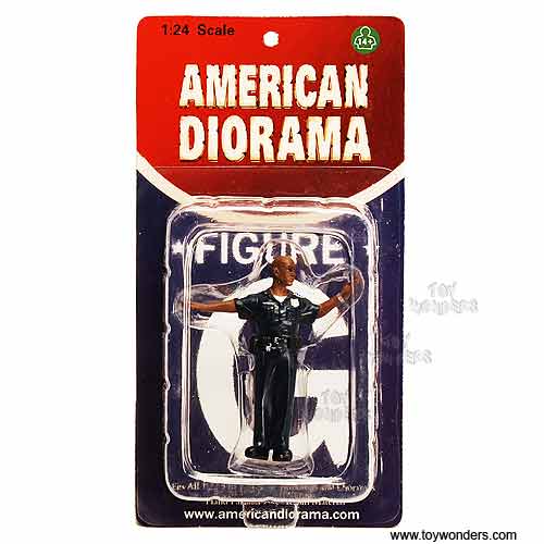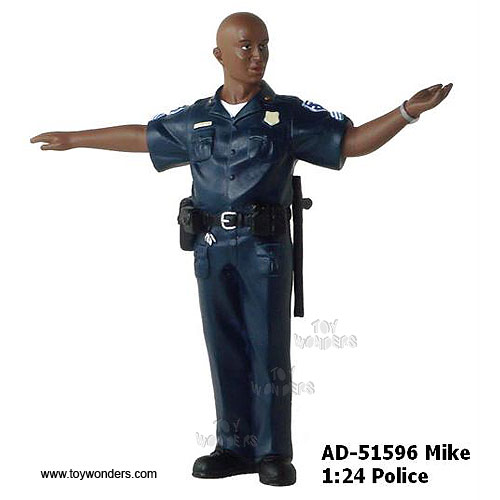 51596 American Diorama Figurine - 1:24 scale Police Mike Figure in DARK BLUE. Hand painted cold-cast resin. This 2.75" figure is great for decorating 1:24 scale cars and dioramas. Manufactured by American Diorama. Individually packed in a blister card. Card size: 3.75" x 7.5". 12 pcs per inner.