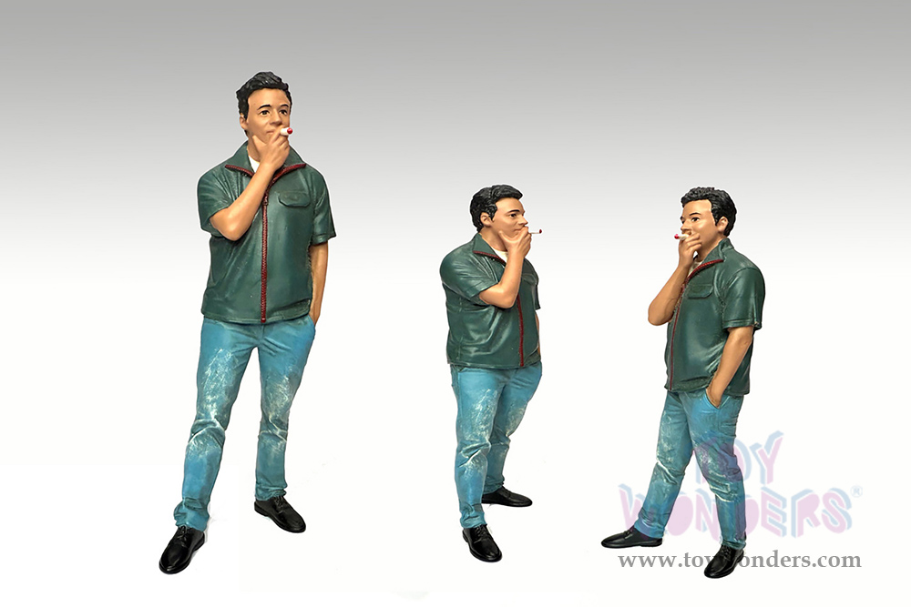 ADP-70103 American Diorama Figurine - Premium Series | Top Tuners Figure #3. 1:24 scale male figure in green shirt and blue jeans. High quality 3D printed figure, hand polish, hand painted features extra details on the figures seemless multi part articulations, perfect in any angles. This 3"H figure is great for decorating 1:24 scale cars, auto body shop and dioramas. Manufactured by American Diorama. Individually packed in a decorated box. Box size: 2.75"L x 1.375"W x 4.125"H. Note: Vehicle is not included.