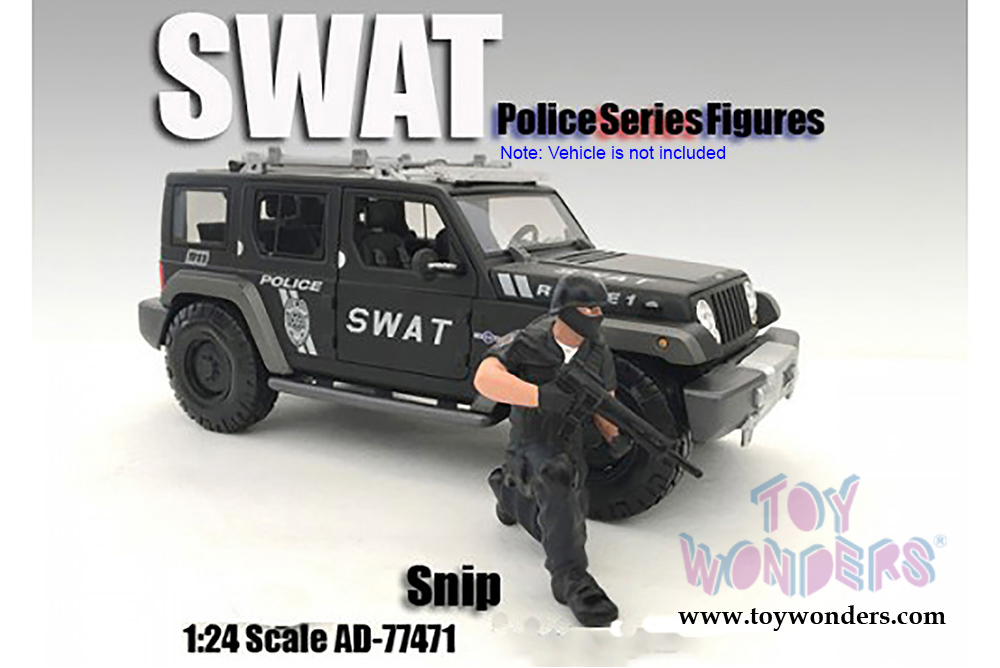 77471 American Diorama Figurine - SWAT Team Rifleman. 1:24 scale male figure in black police SWAT Team uniform.