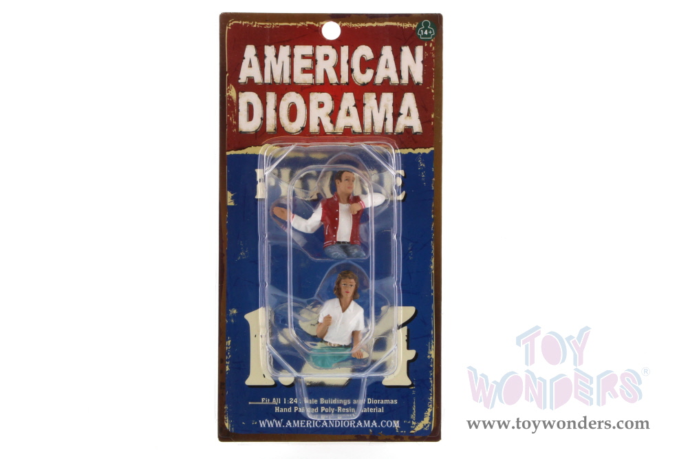 23829 American Diorama Figurine - 1:24 scale Seated Couple II Figures set of 2 in red with white. Hand painted poly-resin material. These 1.5" high figure are great for decorating 1:24 scale cars and dioramas. Manufactured by American Diorama. Individually packed in a blister card. Card size: 4" x 7.5". 12 pcs per inner box. Note: Vehicle is not included.