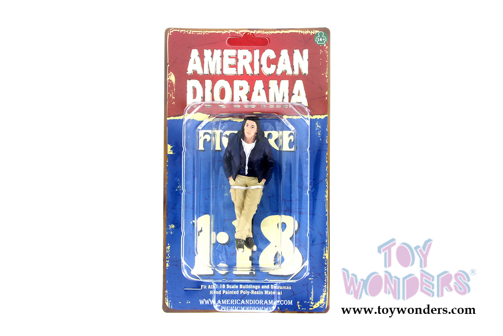 Hand painted cold-cast resin. This 4"H figure is great for decorating 1:18 scale cars, auto body shops, and dioramas. Manufactured by American Diorama. Individually packed in a blister card. Card size: 5" x 8.5". Note: Vehicles are not included.