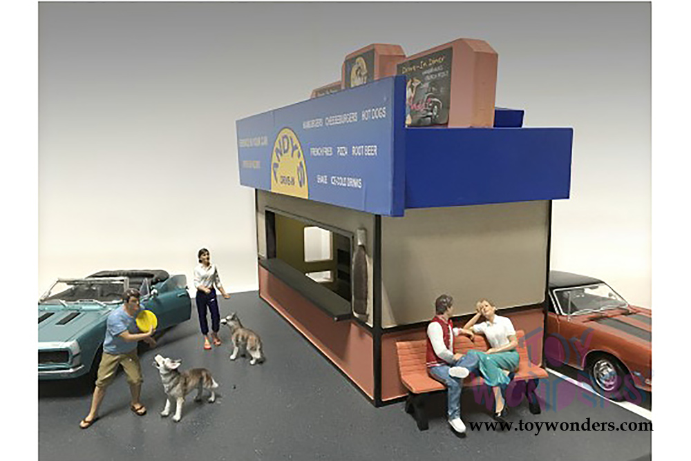 Hand painted polyresin material. Woman is 3"H, dog is 1"H. These figures are great for decorating 1:24 scale cars and dioramas. Manufactured by American Diorama. Pair individually packed in a blister card. Card size: 4" x 7.5". 12 sets per inner box. Note: Vehicle is not included.