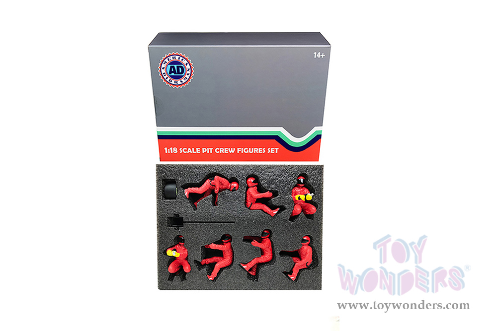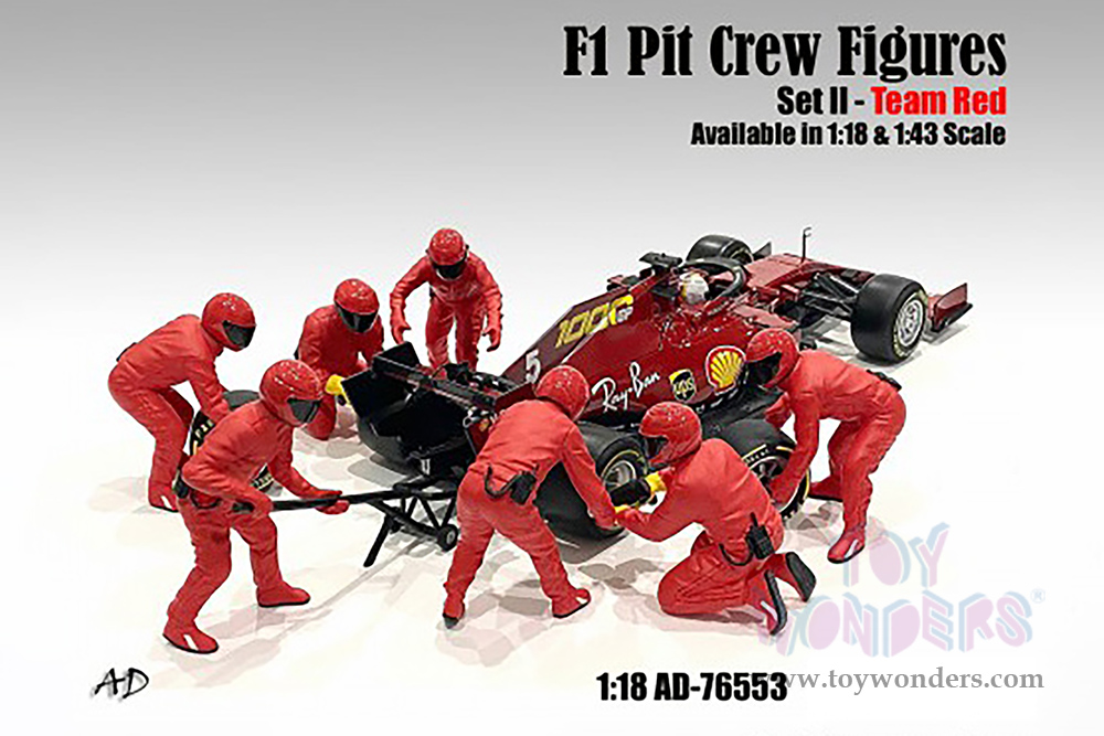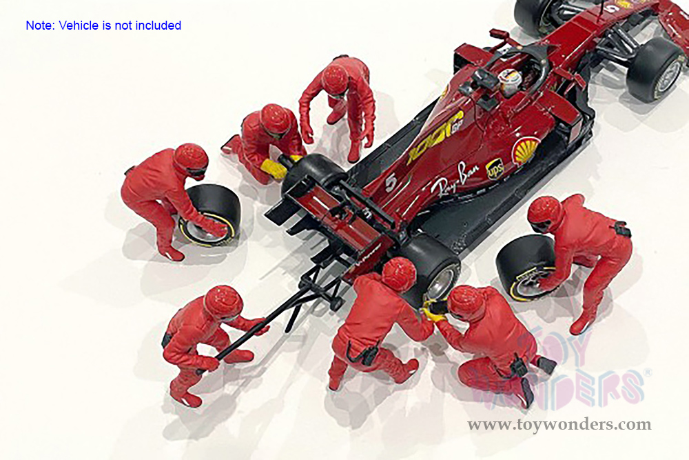 American Diorama Figurines - Formula One F1 Pit Crew Team Red Set II - Set of 7 Figures and accessories (1/18 scale, Red) 76553