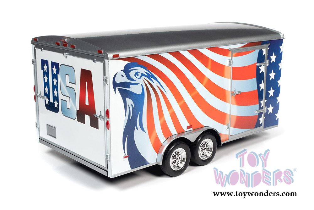 Auto World - American Muscle 30th Anniversary | Four Wheel Enclosed Trailer (1/18 scale diecast model car, Red/White/Blue) AMM1266