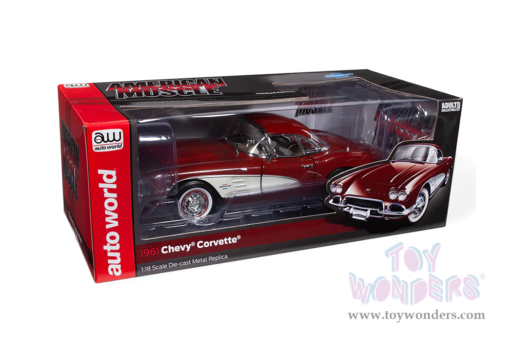 Auto World American Muscle - Chevrolet® Corvette® Convertible (1961, 1/18 scale diecast model car, Honduras Maroon/Ermine White Cove) AMM1281