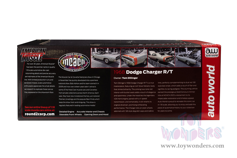 Auto World - American Muscle Dodge Charger R/T Hardtop Muscle Car & Corvette Nationals (MCACN) (1968, 1/18 scale diecast model car, Silver) AMM1344 MAP: $104.99