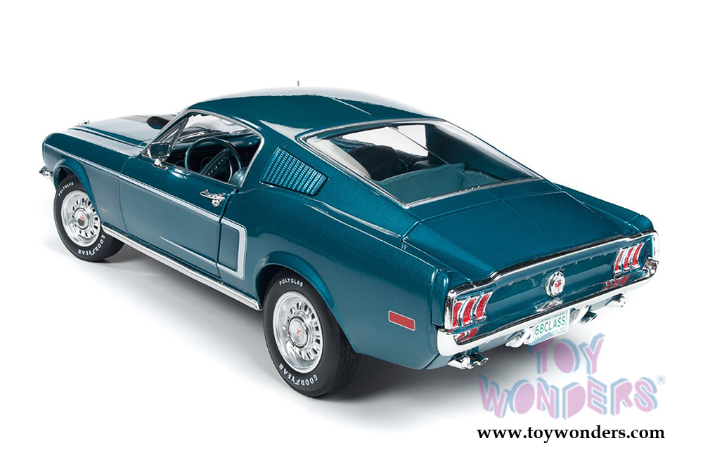 Auto World - American Muscle | Ford Mustang GT 2+2 Hardtop Class of '68 (1968, 1/18 scale diecast model car, Gulfstream Aqua) AMM1132