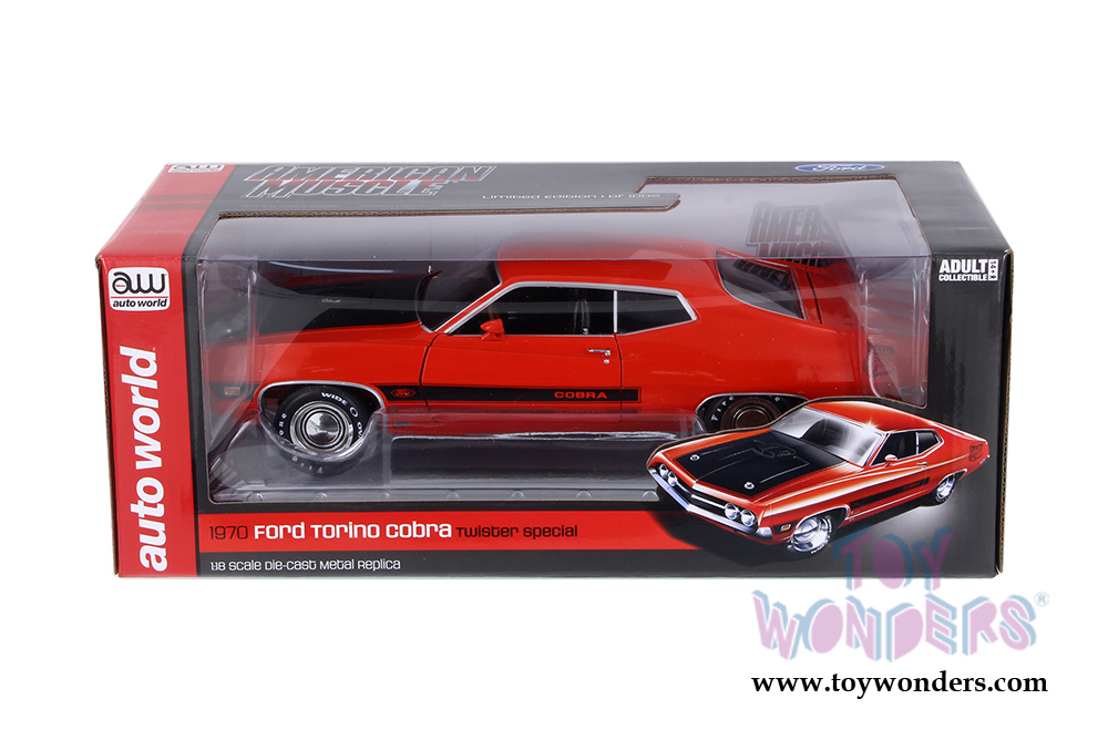 Auto World American Muscle - Ford Torino Cobra Twister Hardtop (1970, 1/18 scale diecast model car, Calypso Coral) AMM1112