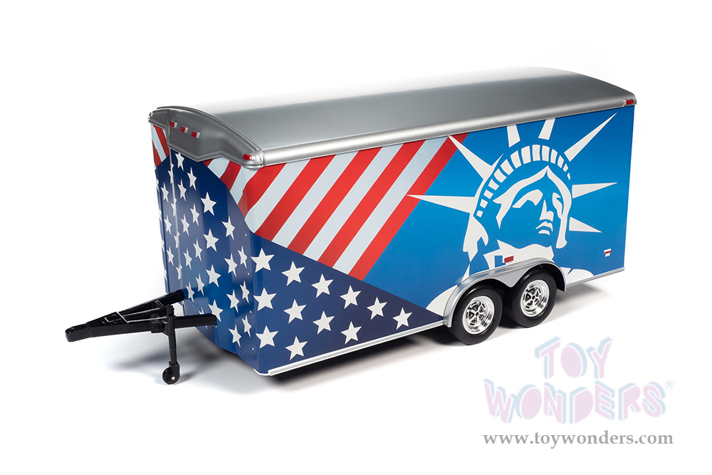 Auto World American Muscle - Four Wheel Enclosed Trailer Patriotic (1/18 scale diecast model car, American Flag Graphics) AMM1284 MAP: $59.99