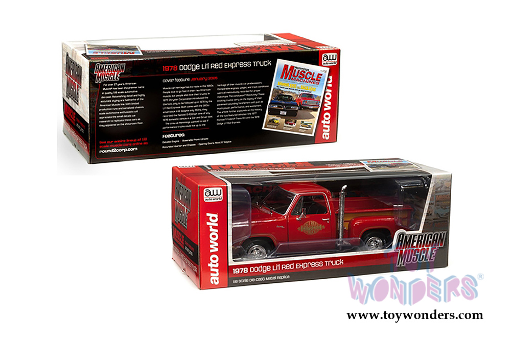 Auto World American Muscle - Hemmings Muscle Machines | Dodge Adventurer 150 Pickup Truck - Li'l Red Express Truck (1978, 1/18 scale diecast model car, Red) AMM1194