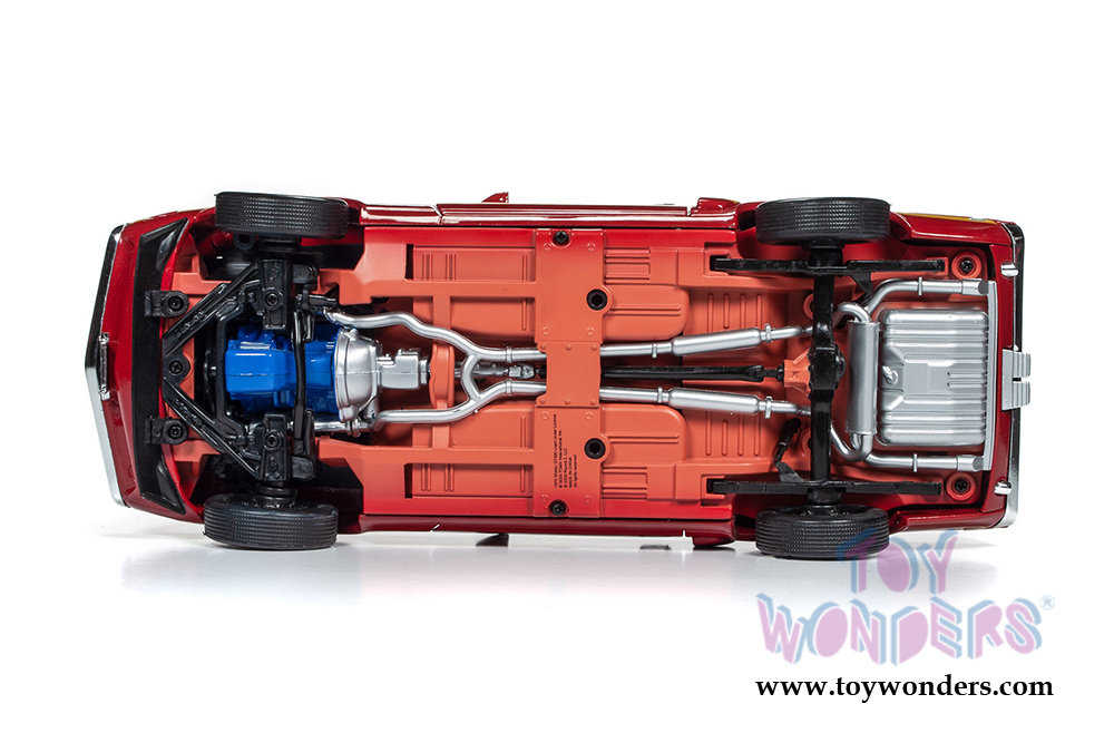 Auto World has accurately replicated this car just as it was featured in the Hemmings Muscle Machines July 2010 issue. It is painted in Candy Apple Red with deep yellow GT500 side racing stripes with a white interior. The distinctive front end, specific to only to Shelby versions, completes this classic convertible’s look.