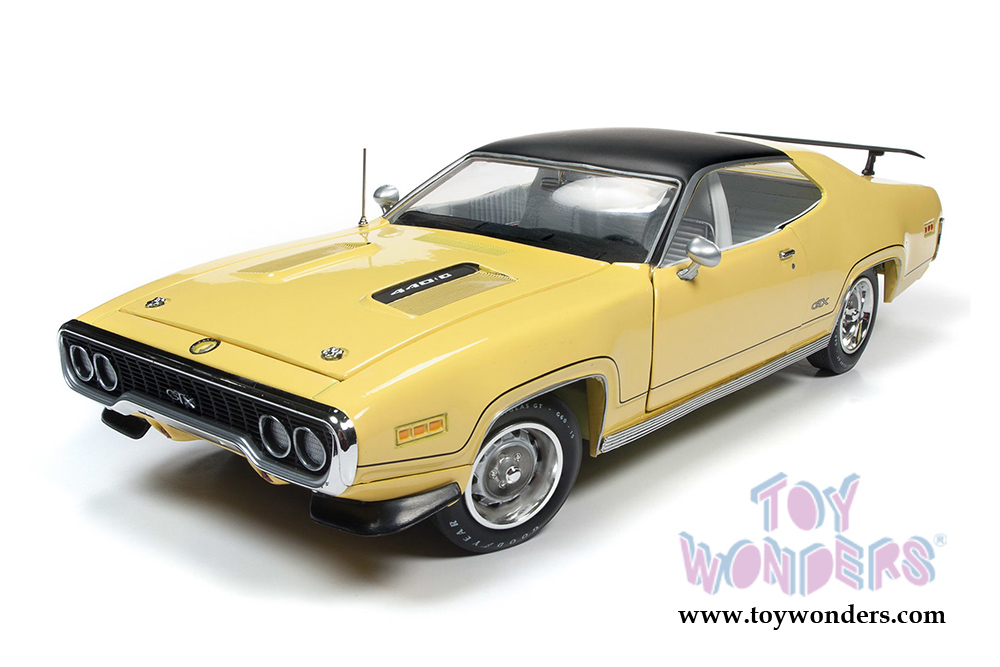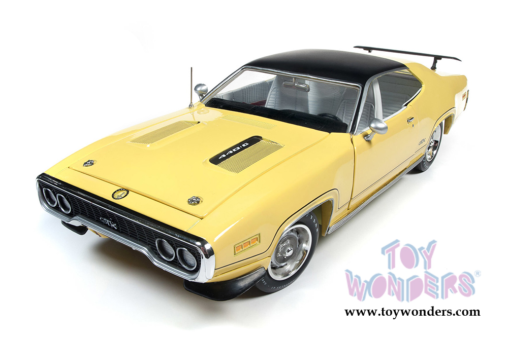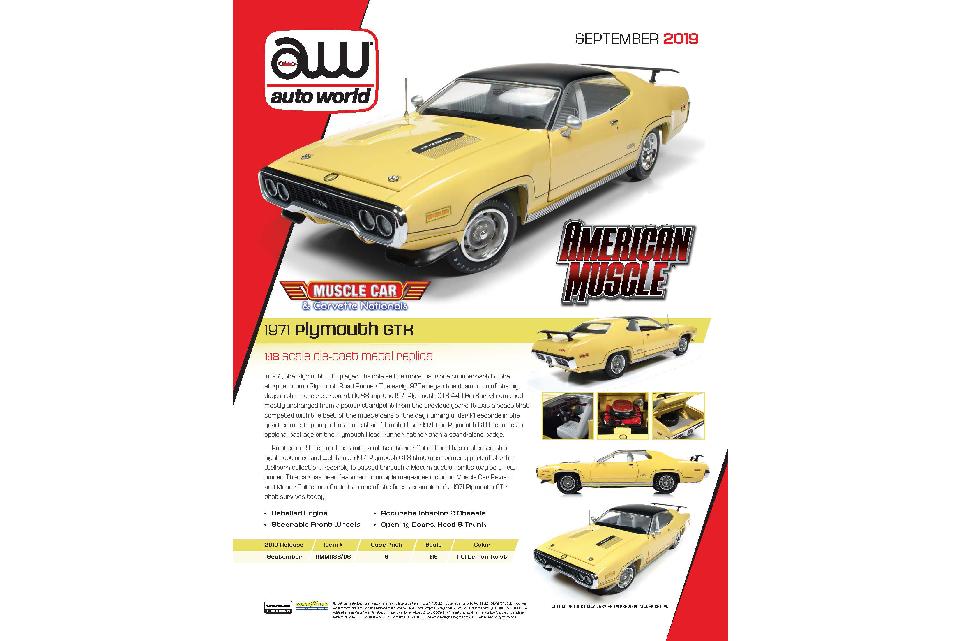 Auto World - American Muscle - Plymouth GTX Hardtop Muscle Car & Corvette Nationals (MCACN) (1971, 1/18 scale diecast model car, Lemon Twist) AMM1186