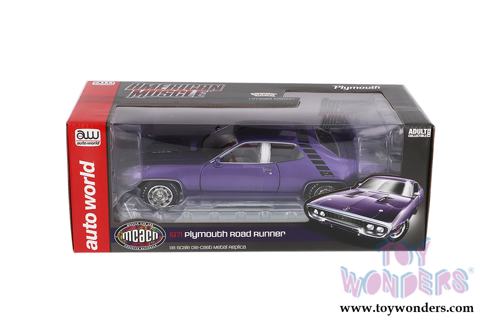 Auto World - American Muscle - Plymouth Road Runner Hardtop Muscle Car & Corvette Nationals (MCACN) (1971, 1/18 scale diecast model car, Violet) AMM1182