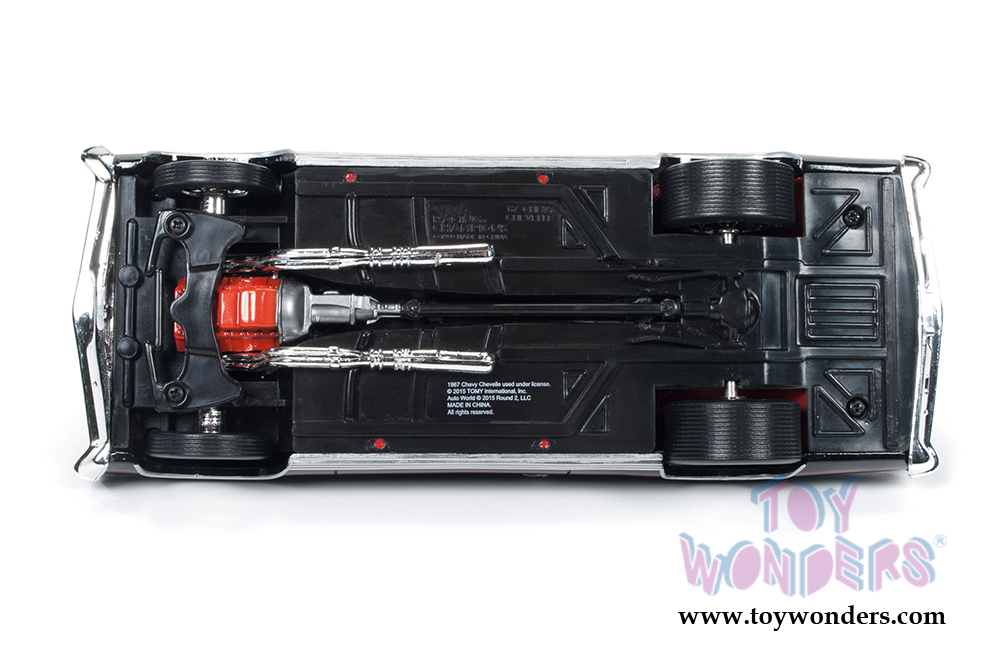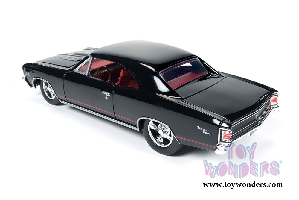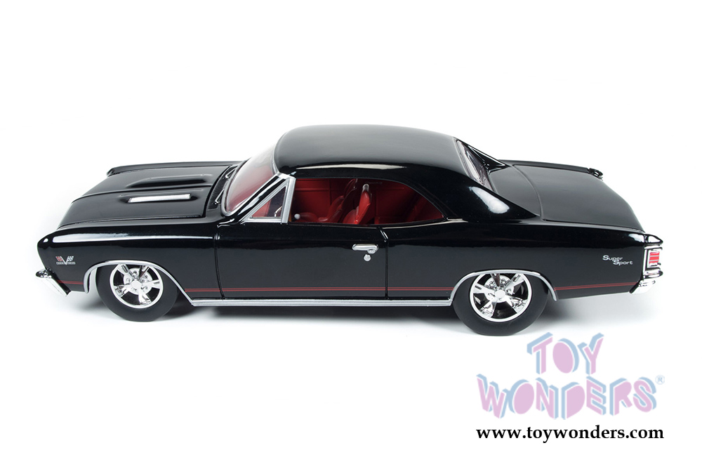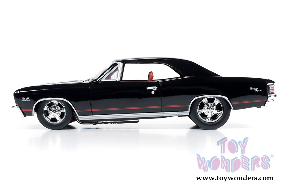 Auto World proudly offers this 1967 Chevrolet Chevelle SS in tuxedo black, with red bucket seat interior, big-block 396 engine and custom wheels, creating a truly remarkable 1:24 scale collectable.