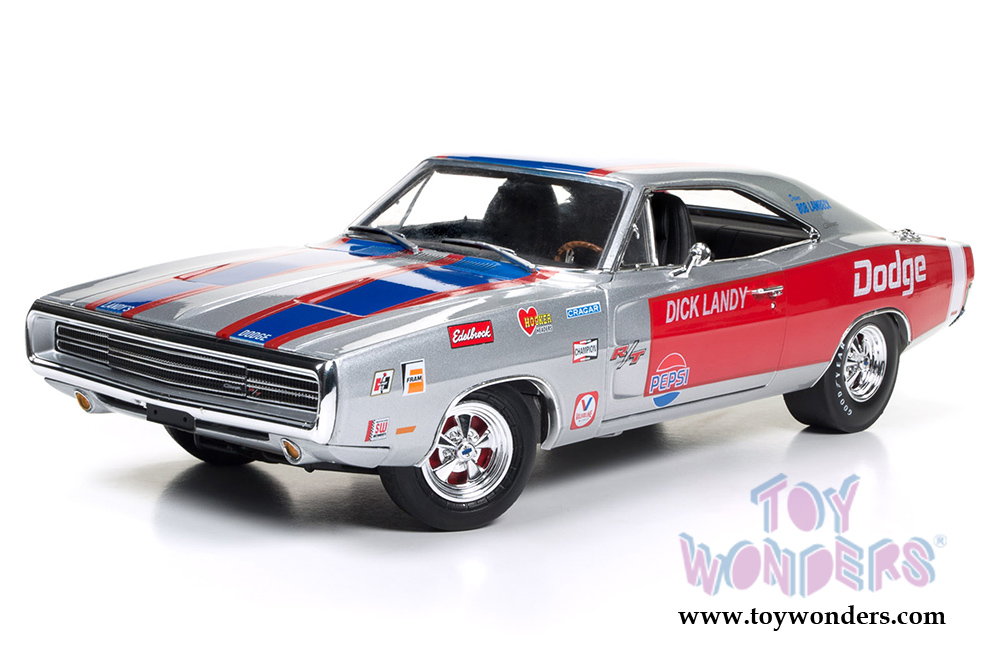 Auto World - Dodge Charger R/T - Dick Landy (1970, 1/18 scale diecast model car, Gray, red and blue stripes) AW238