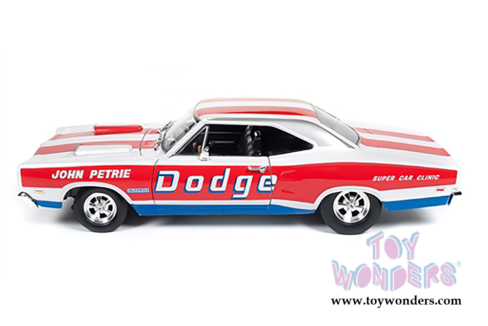 Auto World - Dodge Coronet Super Bee - John Petrie SS/E Car Clinic (1969, 1/18 scale diecast model car, White, red and blue stripes) AW222