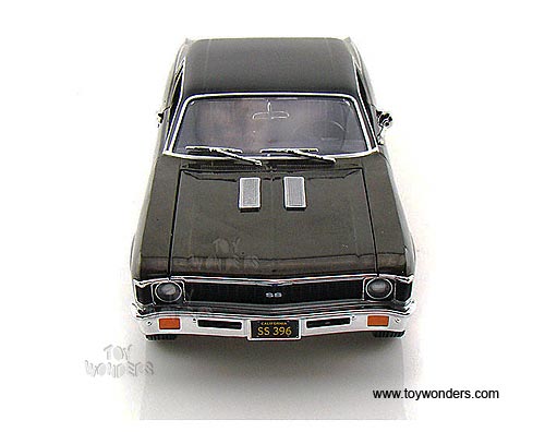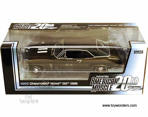 AMM966 Auto World ERTL Elite - 1969 Chevrolet Nova SS396 Hard Top 20th Anniversary. 1:18 scale diecast collectible model car. This Chevy Nova SS-396 is a 10.25"L x 4"W x 2.75"H die-cast metal car with openable hood & doors, steerable front wheels, and detailed engine, accurate interior & chassis. This 1969 Chevrolet Nova SS 396 is manufactured by Auto World. Individually packed in a window box. Box size: 13.25"L x 6.1"W x 5"H. AMM966 is in BURNISHED BROWN color. GM is a trademark of the General Motors Corporations.