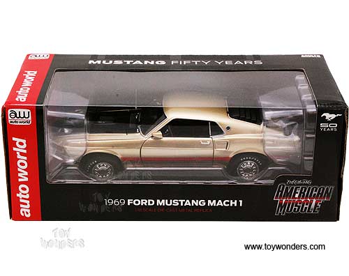Auto World ERTL - Ford Mustang Mach 1 Hard Top - Golden 50th Anniversary of Mustang (1969, 1/18 scale diecast model car, Champagne Gold) AMM1029