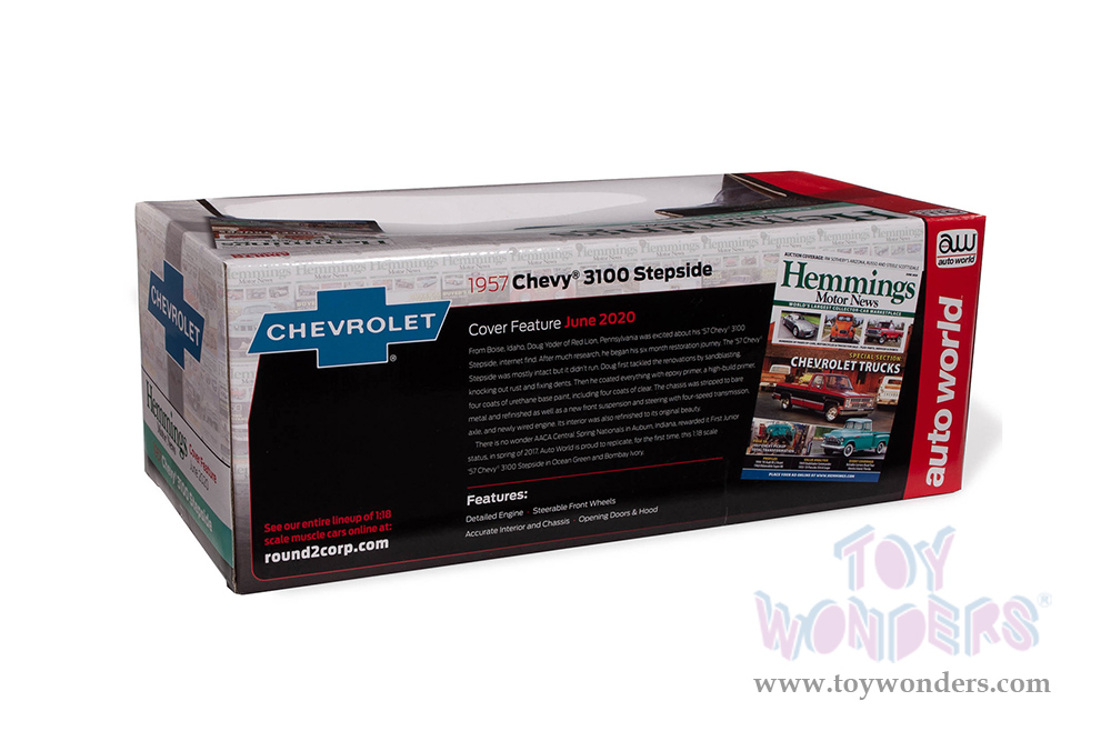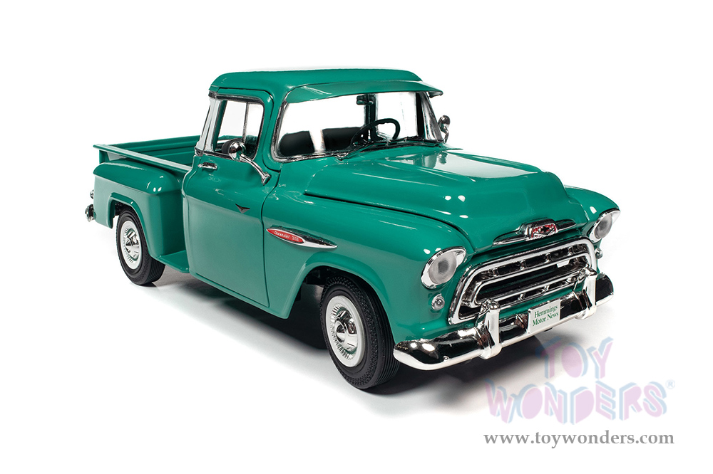 Auto World - Hemmings Motor News | Chevrolet® 3100 Stepside Pickup Truck Magazine Cover Car (June 2020) (1957, 1/18 scale diecast model car, Ocean Green) AW293