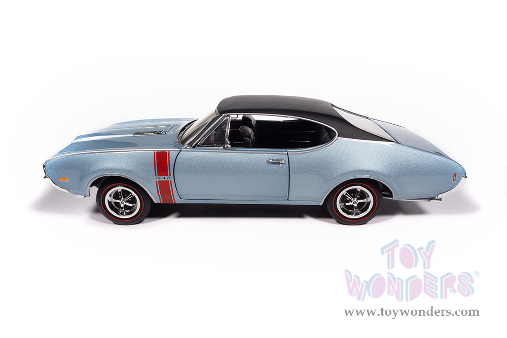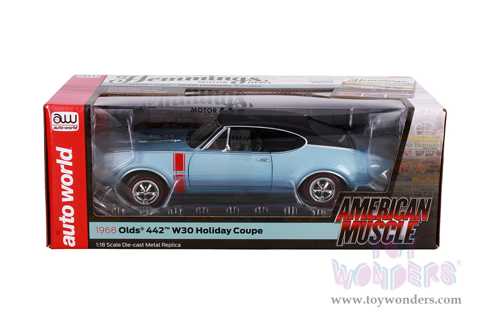 Auto World - Hemmings Motor News | Oldsmobile® 442™ W30 Holiday Coupe Magazine Cover Car (July 2023) (1968, 1/18 scale diecast model car, Teal Frost) AMM1350 MAP: $104.99