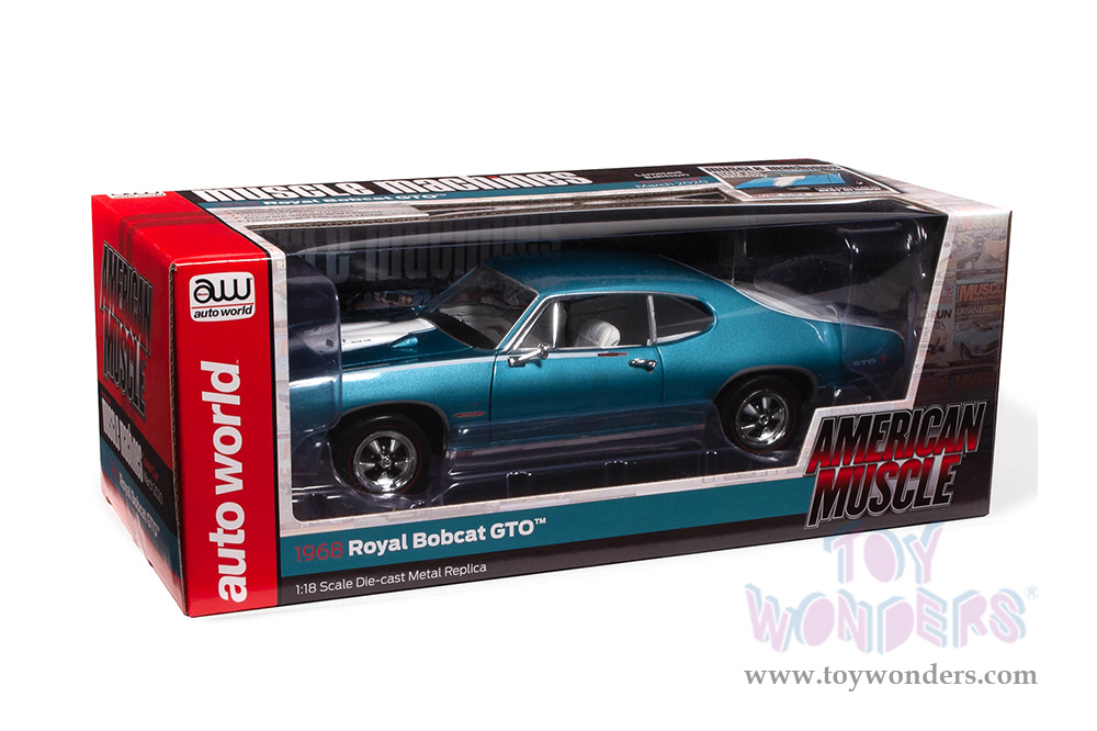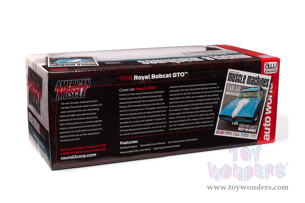 Auto World - Hemmings Muscle Machines | Pontiac Royal Bobcat GTO Magazine Cover Car (March 2020) (1968, 1/18 scale diecast model car, Meridian Turquoise/white) AMM1277