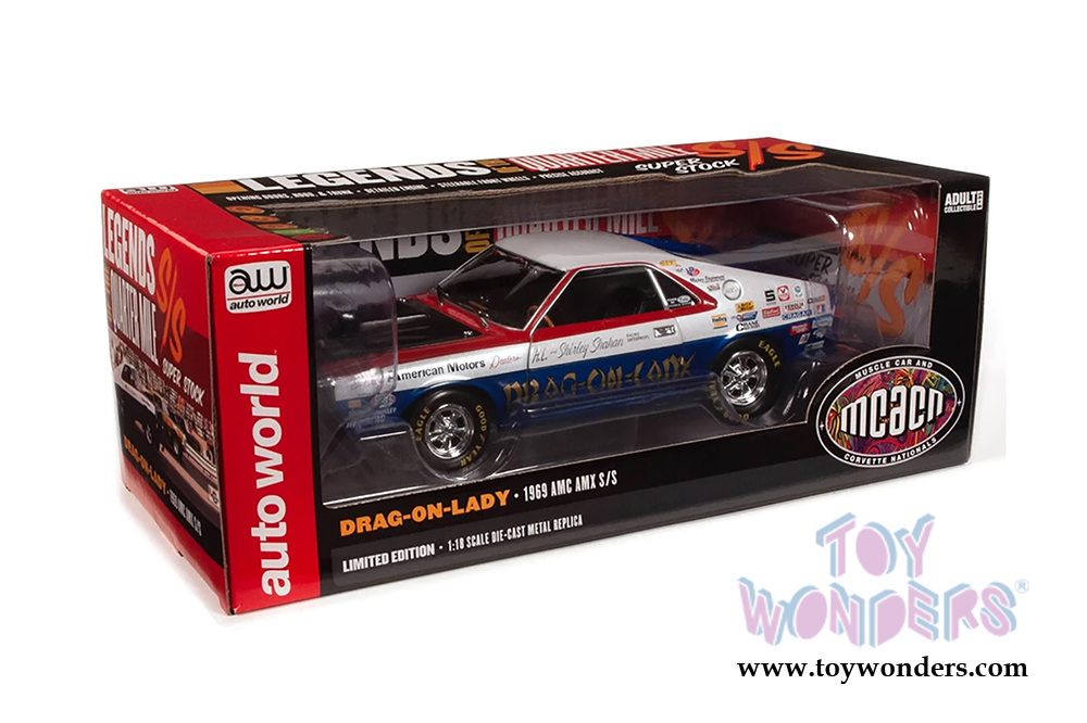 Auto World Legends - AMC AMX S/S Drag on Lady "Legends of the Quarter Mile" Muscle Car & Corvette Nationals (MCACN) (1969, 1/18 scale diecast model car, Red/White/Blue/Black) AW267