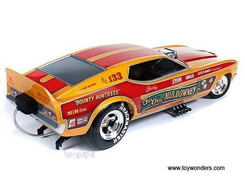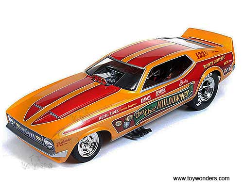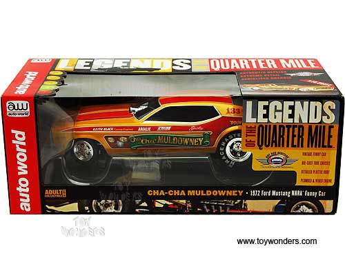 Auto World Legends - Cha-Cha Muldowney Ford Mustang NHRA Funny Car (1972, 1/18 scale diecast model car, Orange w/ Red Stripes) AW1113