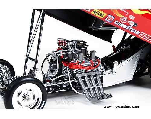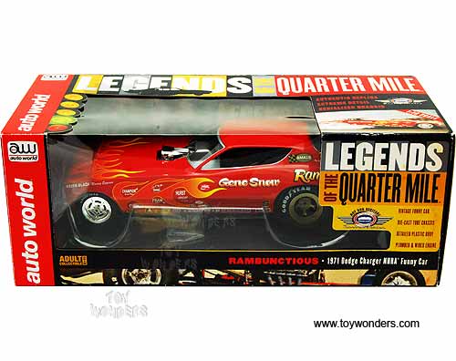 Auto World Legends - Gene Snow Rambunctious Dodge Charger NHRA Funny Car (1971, 1/18 scale diecast model car, Red w/ Flames) AW1118