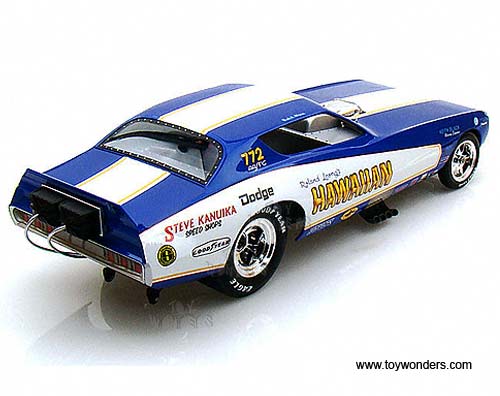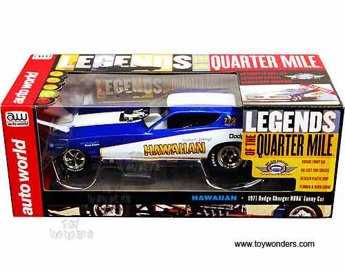 Auto World Legends - Hawaiian Dodge Charger NHRA Funny Car (1971, 1/18 scale diecast model car, Blue w/ White Stripes) AW1105