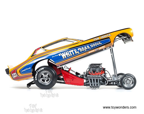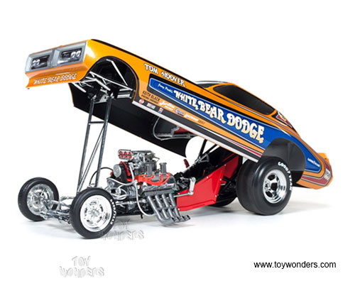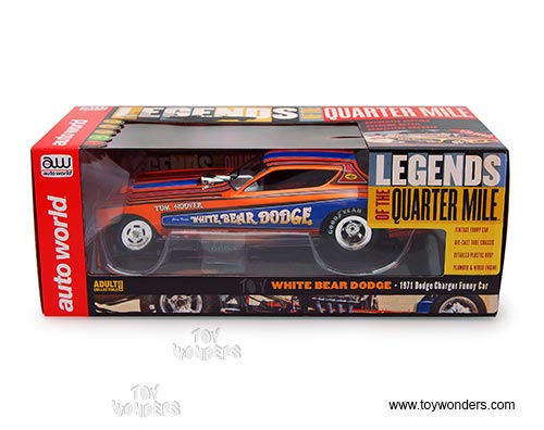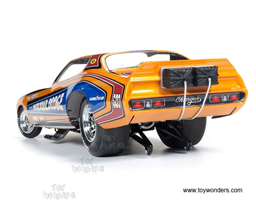 Auto World Legends - White Bear Dodge Charger NHRA Funny Car (1971, 1/18 scale diecast model car, Orange w/ Blue Stripes) AW1161