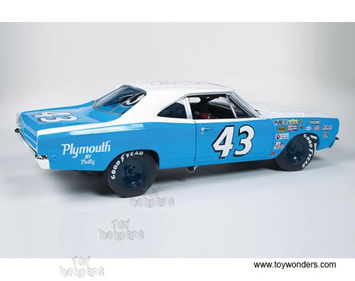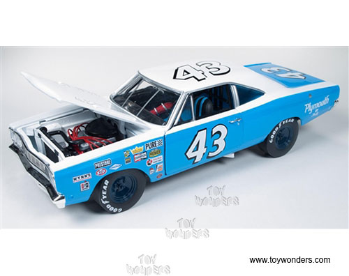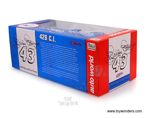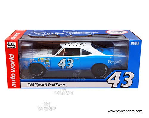 Auto World Plymouth Road Runner #43 Hard Top (1968, 1/18 scale diecast model car, Blue w/ White) AW210