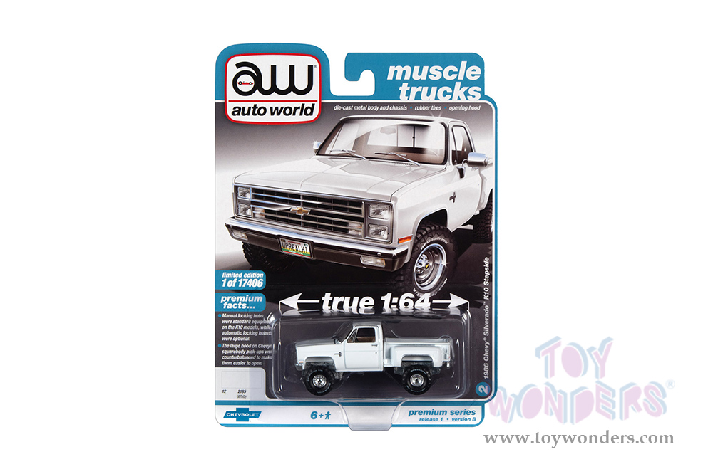 Auto World Premium - 2022 Release 1 Set B | Chevrolet® Silverado™ K10 Stepside Pickup Truck "Muscle Trucks" (1986, 1/64 scale diecast model car, Gloss White) AWSP095/24B