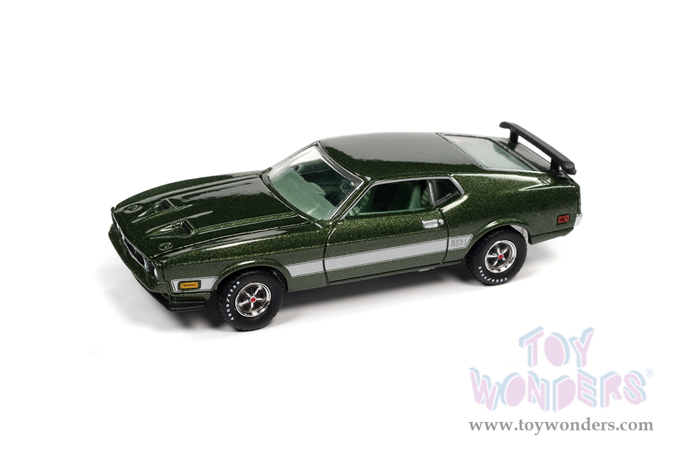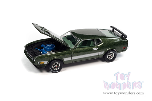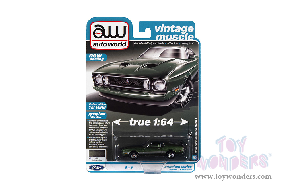 Auto World Premium - 2022 Release 1 Set B | Ford Mustang Mach 1 "Vintage Muscle" (1973, 1/64 scale diecast model car, Ivy Bronze Green Metallic/Silver Stripes) AWSP099/24B